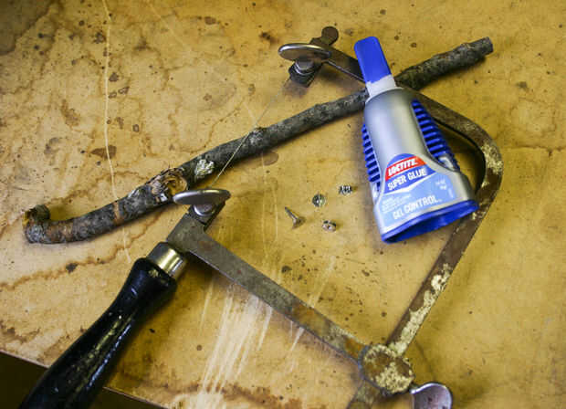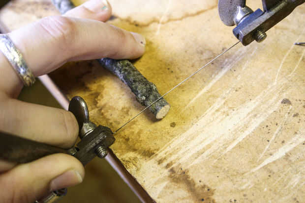 Cortar una rodaja en el extremo de la ramita con Sierra de joyero. Queremos cortar sólo un poco más pequeño que un cuarto de pulgada.