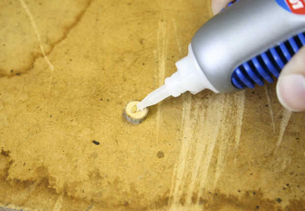 PLOP una gota de Loctite en cualquier lado es el aplanador, más aun lado de la rebanada de madera.