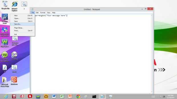 Ir a guardar como y guardalo en el escritorio o en cualquier lugar donde usted podrá encontrar. Guárdelo como un archivo .vbs.