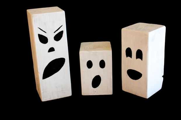 Como se puede ver, hemos pintado dos opposide lados de cada post. Algunas caras son amigables y algunas son de miedo.