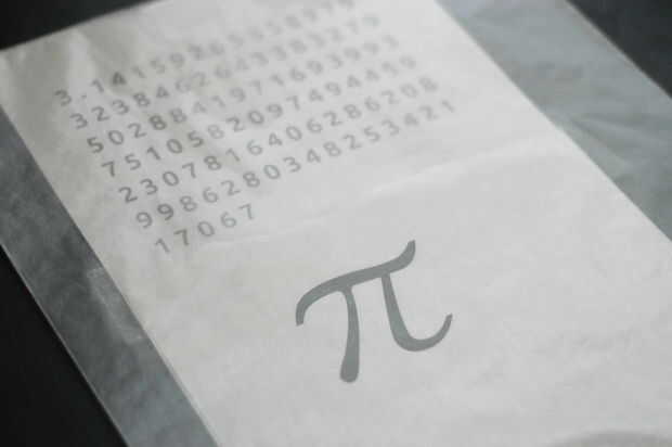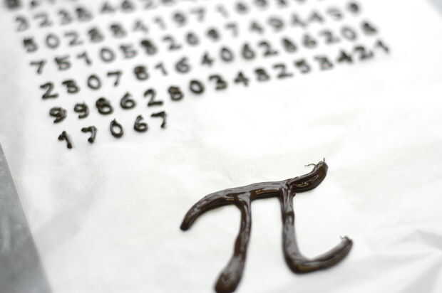 Utilizando un procesador de texto, copiar y pegar los primeros 100 dígitos de pi en un nuevo documento. Destacarlos y convertirlos en una fuente en negrita, punto 36 (hemos utilizado Adobe Sans Serif Gothic B). Coloque un espacio entre cada número. Inserte el pi de símbolo y convertir a una fuente de 340 puntos (hemos utilizado Adobe Ming Std L). Imprimir este documento y cubrir con papel de cera.