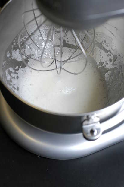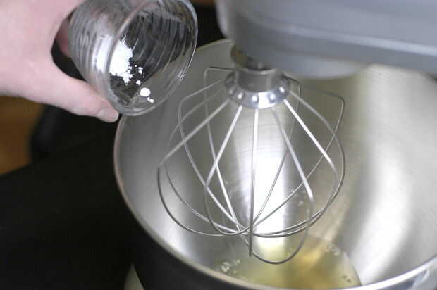 Permitir que las claras de huevo a temperatura ambiente. Lugar de ellos y el cremor tártaro en el tazón de la batidora con base. Vencer en alta hasta forman picos suaves, unos 2 minutos.