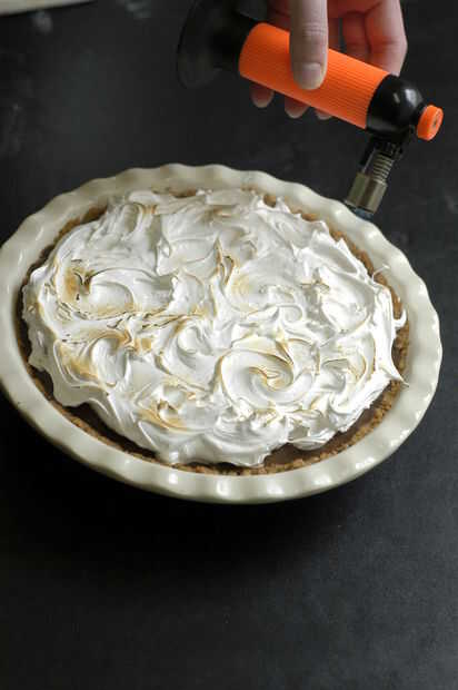 Si no tienes un soplete de cocina, colocar el pastel en una parrilla caliente hasta tostado, aproximadamente 1 minuto. Como el calor puede haber alcanzado la natilla, refrigera la tarta durante al menos 4 horas antes de añadir la guarnición.