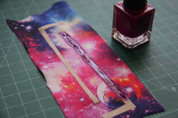 2. el esmalte de uñas deseado y agitarla si ves cualquier separación. Aplicar en la parte superior la ruta circuito, dejandolo ir sobre el borde y sobre la tela.