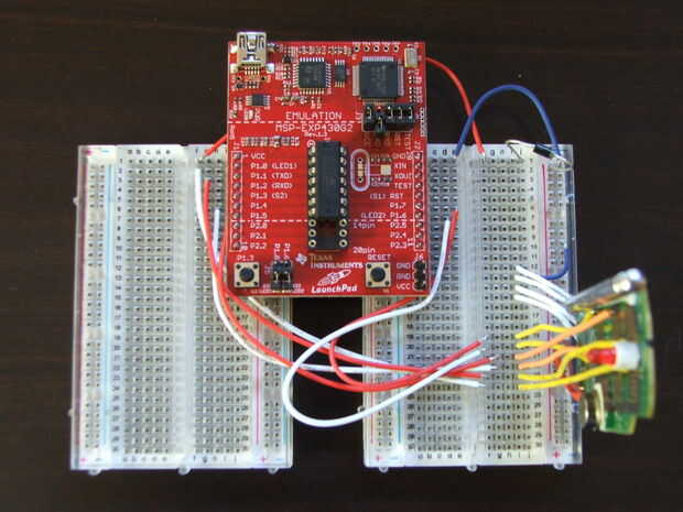 El Launchpad fuentes 3.6V cuando se conecta al puerto USB de un ordenador. El mando a distancia utilizado una batería de 3V por lo que he añadido un diodo a la línea de Vcc a la energía.