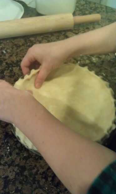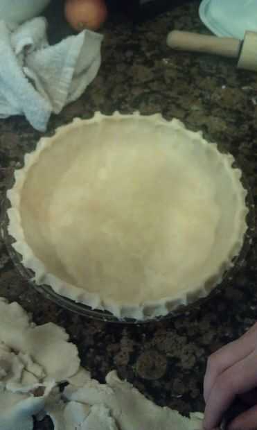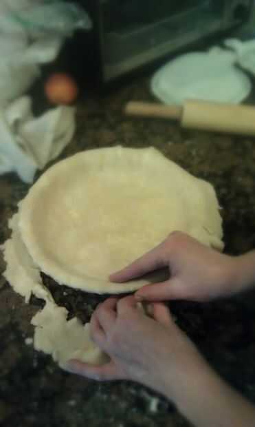Pellizcar la masa alrededor de los bordes de la cacerola con el pulgar y el dedo índice para prensar los bordes.