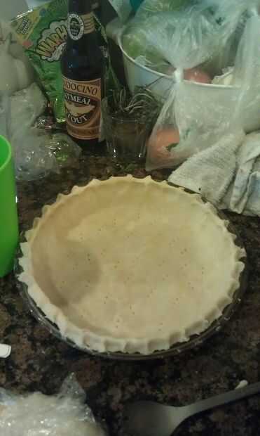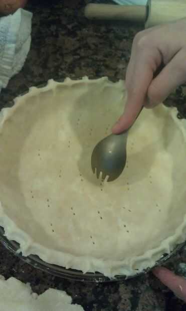 Finalmente, meter la parte inferior de la cáscara con un tenedor (o spork). Este paso evita que la corteza burbujear para arriba.