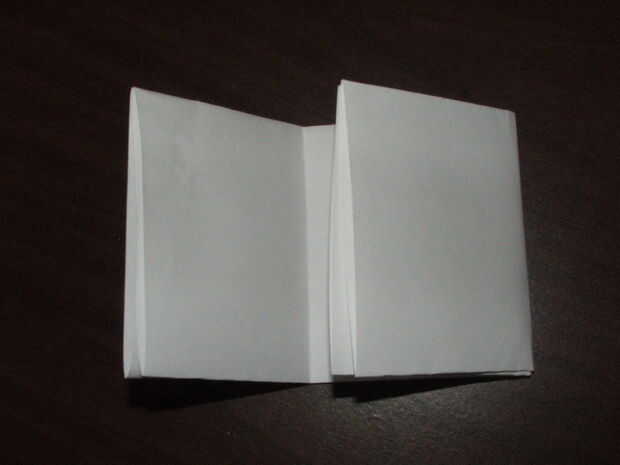 doble el papel en el estilo de media hamburguesa (línea 1 Si usas la plantilla). Luego doblar las dos mitades para que se reúnan en el centro (líneas 2 y 3 de la plantilla). Volver a doblar el primer doblez, con los pliegues segundo dentro (véase la segunda imagen) luego pliéguela en tercios, nuevo estilo de hamburguesa. (fotos del 3 º / 4 º)