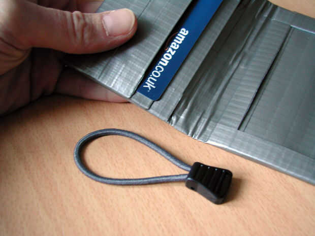 Usted puede encontrar un montón de Instructables o videos en línea que le muestre cómo hacer el tejido de cinta de conducto.
