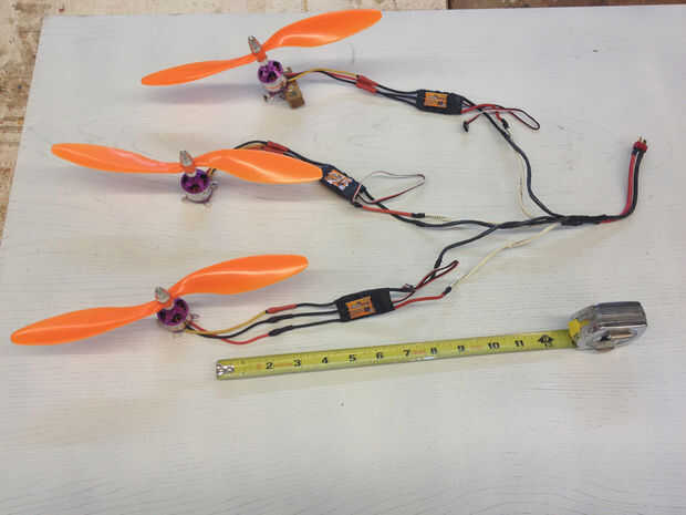 Cada motor está conectado a un controlador de velocidad y cada positivo de cada variador está conectado a cada cable negativo de cada regulador está conectado juntos. Los cables positivos y negativos entonces se conectan a un conector de batería.