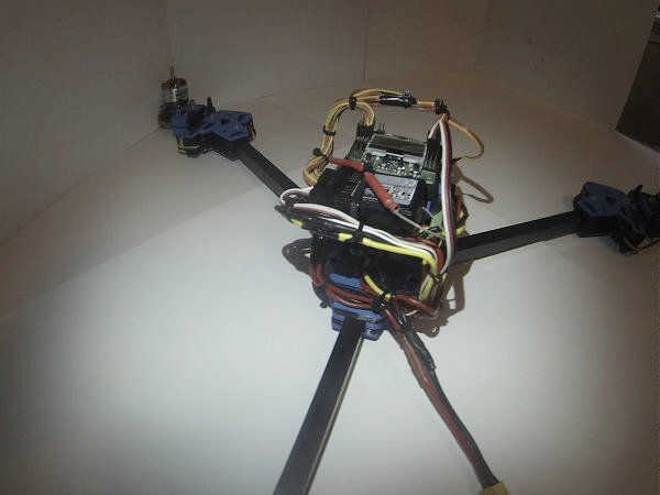 Para el proyecto Quad Copter, nuestro equipo heredado 4 motores brushless con CES(Controladores de velocidad electrónicos), hélices, un marco, 3 baterías de LiPo y cargador, un controlador de vuelo de piloto automático de APM 2.6 con módulo GPS y un