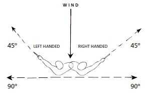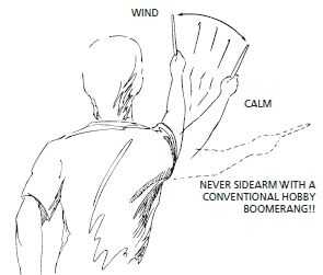 Para los zurdos: el bumerang se debe tirar a la izquierda del viento para que el boomerang es ayudado en su camino de regreso.