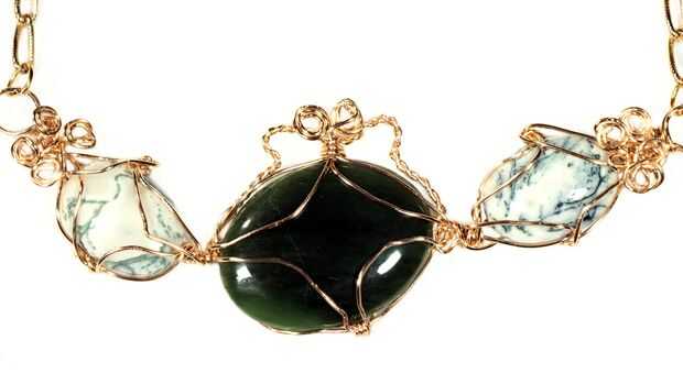 http://www.JewelryLessonVideos.com presenta: triádica alambre envuelto Multi Stone collar Tutorial de. En esta lección, publicado diseñador Susan Karczewski y el propietario del ronroneo-FECTAMENTE único estudio de diseño de joyería y Boutique en Pierceton, Indiana enseña a wire wrap múltiples cálculos para crear un impresionante collar de declaración!