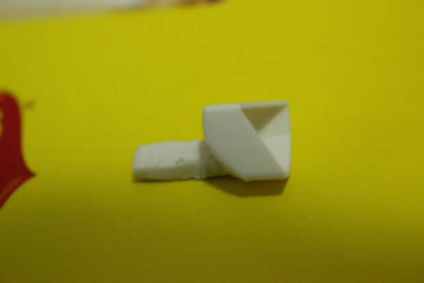Vio en la otra esquina la sección con el pasador. Luego, quite aproximadamente 2 mm del exterior, haciendo mucho más fino el pin por lo que podría caber la otra esquina más adelante.