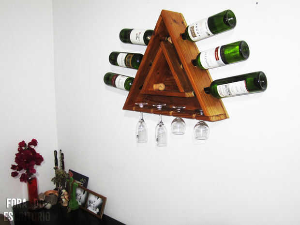 Todavía en la plataforma + cosa vino, vamos a ir un poco más. ¿Qué tal un triangular vino estante de la plataforma para 6 botellas y 4 copas? ¿Suena bien verdad?