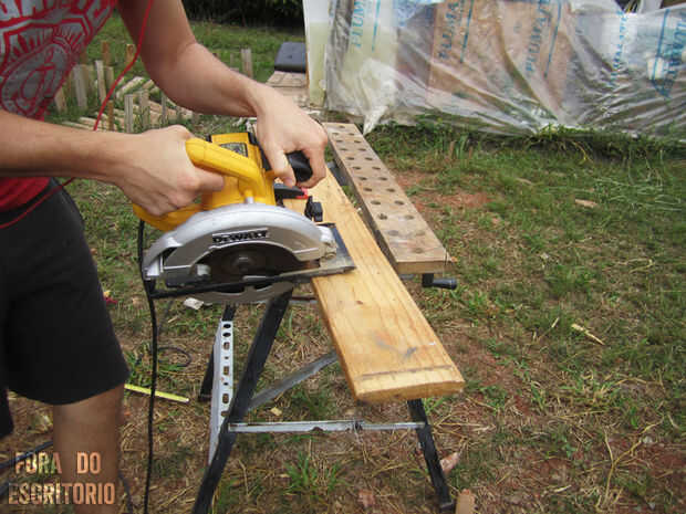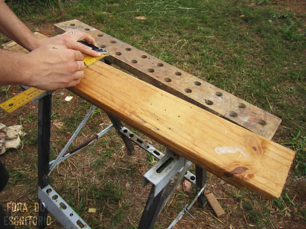 Miden 50cm de un extremo y marcar en todos los 3 pedazos. Use una escuadra para hacer la línea recta y cortar con su conjunto de sierra circular para cortes de 30 º. Lo mismo para el otro extremo del tablero.