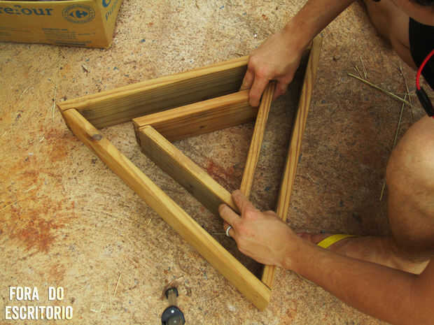 Para el triángulo más pequeño, siga los mismos pasos de la más grande, pero en lugar de cortar la madera con 50 cm, corte con 25 cm en lugar de otro.
