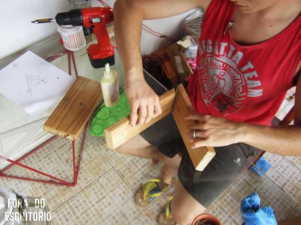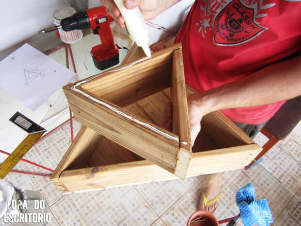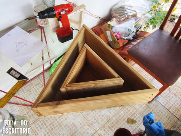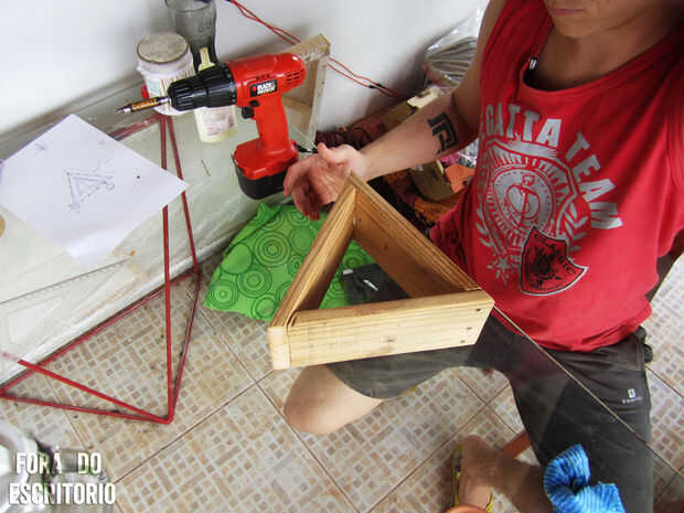 Ahora usted puede medir y el triángulo más pequeño del centro. Use pegamento para fijarla al panel posterior. Si desea puede tornillo de la parte posterior también.