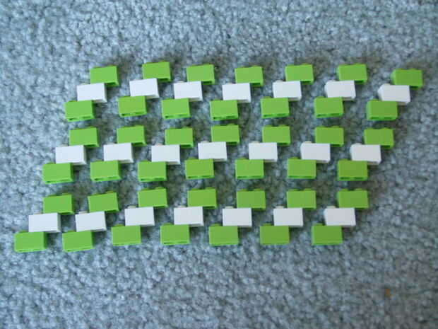 Adherir 3 ladrillos como se muestra. Repita esta 20 veces más para un total de 21 pilas.