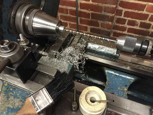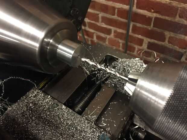 Entonces inicie la perforación hacia fuera con el contrapunto, el diámetro más grande a más pequeño, Añadir 0,5" a cada profundidad, puesto que tomaremos ese material fuera más tarde. Consulte el diagrama parte de diámetros. Son tamaños estándar de Estados Unidos. Las profundidades están al borde de la broca antes de que empieza a cono, y recomiendo medir profundidades con pinzas y un trozo de cinta en el pedacito.