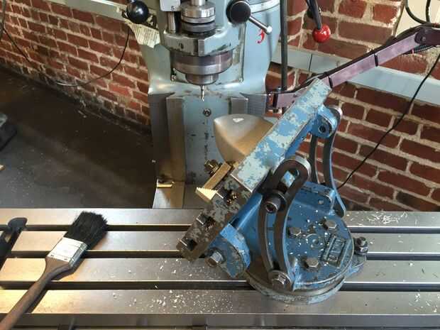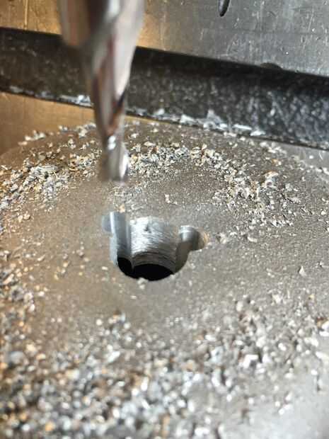 Swap en el molino de extremo de 3/8 de aluminio, utilice para taladrar los orificios en las cuatro esquinas y conectar los agujeros con ranuras. Tendrás que girar 60 y -60 grados para las ranuras de segunda y terceros.