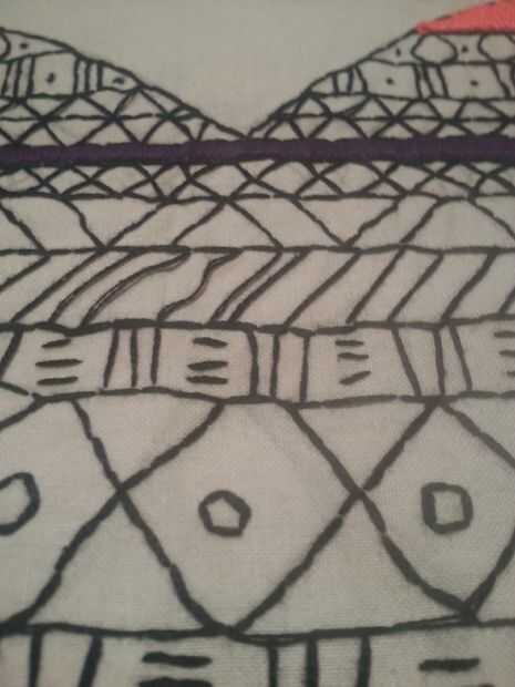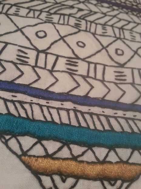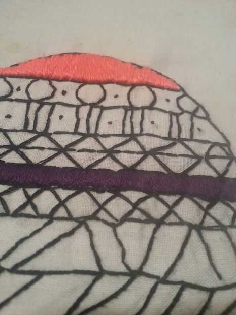 Primero empecé por dibujar un corazón en la tela con el lápiz y el tribal como diseños. Me gustó la idea de algunas líneas de flecos, me da el trabajo que parecen hechos a mano. Partió el hilo de 6 filamento en 2 hilos ya para mí más fácil trabajar con y más hilo de ella. Comencé en la punta del corazón y me trabajado camino con mínimos errores usando el hilo negro. Todos los puntos negros fueron puntadas atrás excepto los puntos pequeños en la parte superior. Esos puntos fueron fallidos nudos franceses y se convirtió en realmente poco x En mi diseño dejé unas filas vacías por lo que pude agregar color. Las filas de color fueron hechas usando una puntada que llevó para siempre hasta el final. Ahora que estás hecho!!!!
