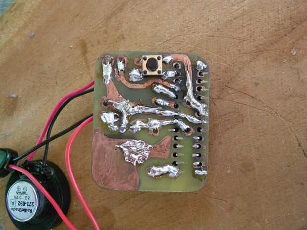 En cualquier caso, hacer la placa de circuito de antes en su estilo preferido. Tengo fotos de mi PCB (aunque poco). Usé un taladro para hacer un montón de agujeros y doblé las esquinas por lo que sería menos de una caja puntiaguda dentro el tribble. Puesto que hay diferentes métodos de 1 billón, puse instrucciones en las etiquetas de imagen e intenta documentar bien.
