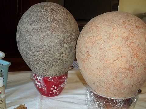 Usé un globo de 12", ha añadido dos capas de pedazos de periódico con harina, agua y pegamento blanco pasta. Cada capa se permitió que seque durante la noche, o más.