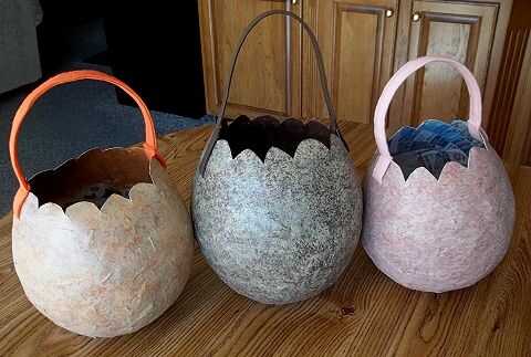 Una vez seco, hizo estallar el globo, había festoneado de la parte superior, añadí una manija de fieltro naranja (con el deshuesado en el medio) y luego aplica dos capas de rociador en sellador mate.