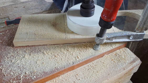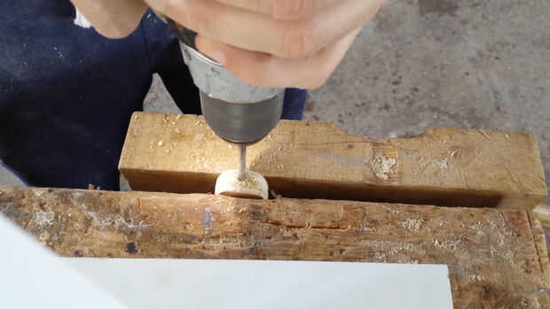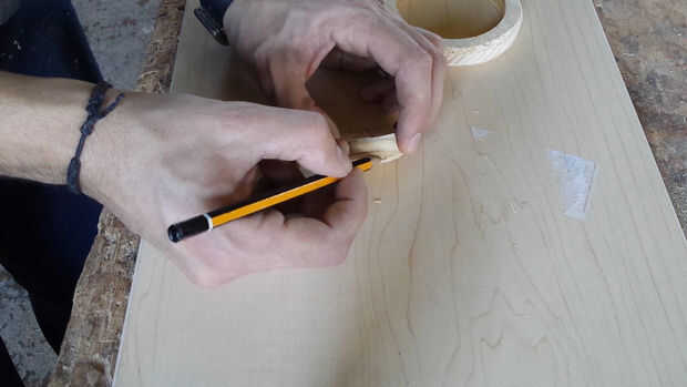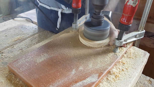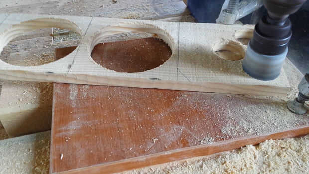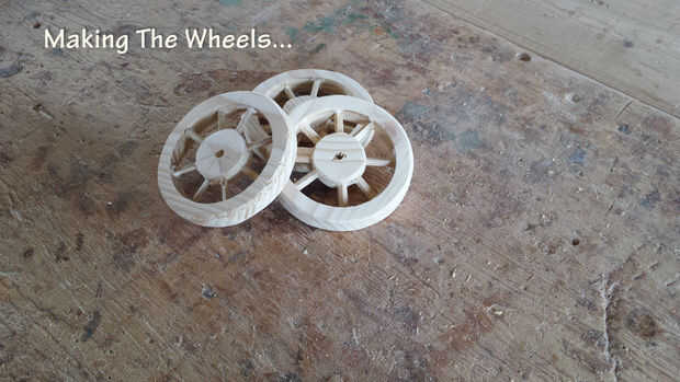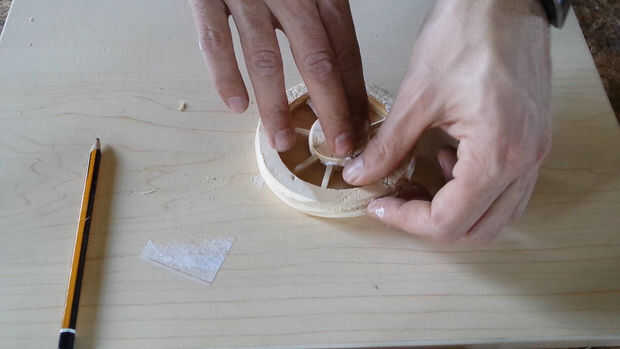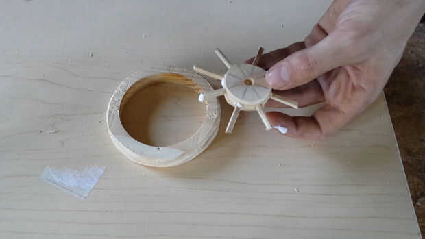 En primer lugar usted necesita hacer tres anillos de madera con un serrucho de 100 mm y un serrucho de 75 mm . Aquellos serán los bordes de la rueda. (Fotos 2 y 3)