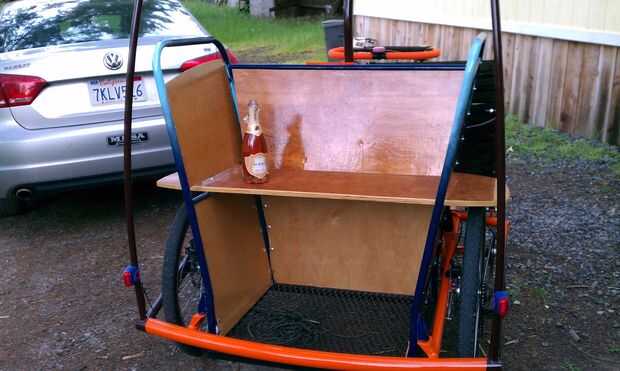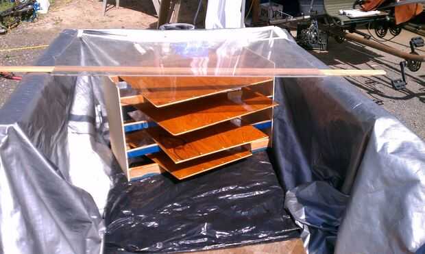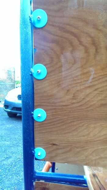 Marco de la zona de la espalda arriba con EMT, sobre una base de malla metálica. Hicimos una caja extraíble, atornillada a la estructura en 4 lugares. Arandelas de la soldadura en el marco y pueden perforar los agujeros de guía, y luego pop del remache de la madera contrachapada en.