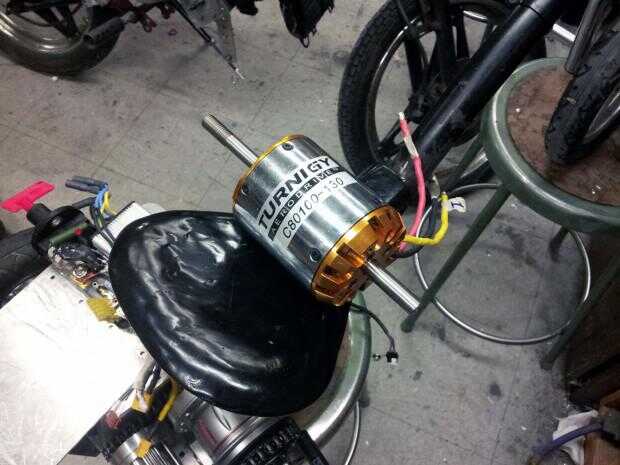 La batería alimenta un controlador Kelly KBS48121 . Dado que este controlador es limitada a 120 pico de amperios y 50 continua, es por mucho rendimiento del triciclo factor limitante. Sin embargo, es muy pequeño y ha sido fiable hasta el momento, a pesar de alimentar un motor demasiado grande para él. La corriente de salida (control de par) el regulador del motor es controlada por un acelerador twist grip situado en el manillar