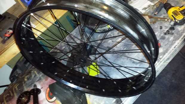 La parte difícil es que triciclos usan cubos especiales para las ruedas traseras, por lo que necesita comprar personalizado hecho ruedas triciclo de un constructor de ruedas, o necesita comprar los cubos y los radios y construirlos tú mismo. La buena noticia es, ruedas gordas son bastante fáciles de construir. La parte más difícil es averiguar qué rayos hacer.