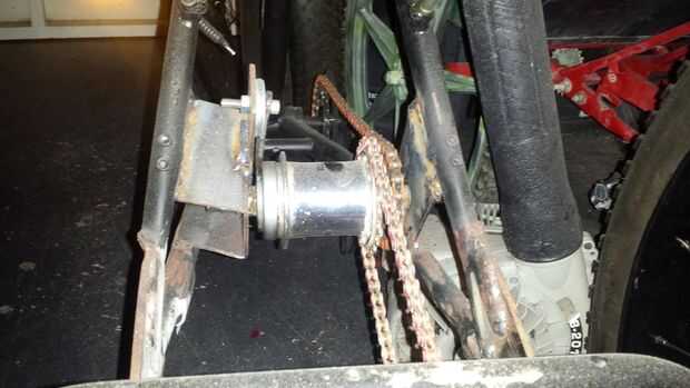- Las estancias de cadena trasera de mi trike son considerablemente más anchos que la anchura de montaje para el eje de engranaje estándar.
