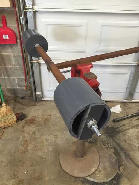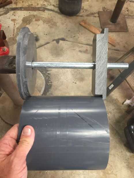 Probablemente tienes estas ruedas van en los ejes. En este caso, el eje es un 5/8 x 12 "perno soldada al final de un pedazo de tubería de acero. Coloque las placas de su eje en el eje y mide la distancia entre los hombros. Corte el tubo a esta longitud. Aplicar una cantidad generosa de cemento solvente de PVC en todas las áreas de contacto y colocar las placas de extremo en el tubo para completar la rueda. Deslice la rueda en el eje y asegúrelo al lugar con las tuercas del eje. Esto debería ser suficiente con acciones tensora y dejarlo curar. Si sus ejes no tienen tuercas, sujete los extremos sobre los neumáticos hasta que se seque el cemento.