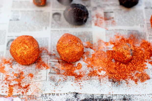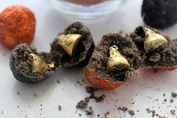 Hay dos opciones que puede utilizar para rellenar tus trucos o trata en la masa de piedra. Puede aplanar la masa y colocar en el centro y formar una bola alrededor de tus delicias; o puede formar las piedras bolas, hágale un agujero en la bola y tus trucos de la materia a través del orificio.