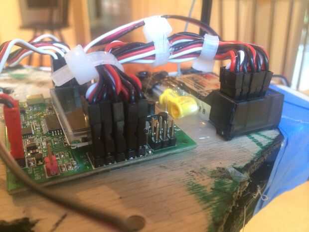 Coloque el controlador de vuelo en el marco de la forma que desee (yo usé pegamento caliente y la espuma) conectar los motores como te dice motor izquierdo es jefe del perno, motor derecho es jefe del pin de dos, el motor de nuevo es jefe del pin de tres, el servo es jefe del pin de cuatro. El conectar su receptor a la Junta kk2 pin a canal uno y perno dos al canal dos y así sucesivamente. Os adjunto mi antena a un Lego que se pega directamente hasta conseguir más van con menos puntos muertos.