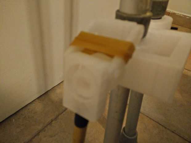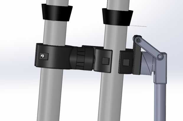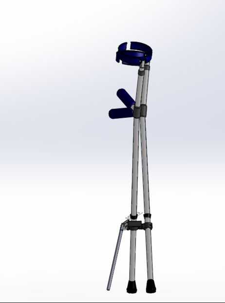 Esto es básicamente una tercera pierna que se mueve hacia los lados cuando se conectan ambas muletas y el mecanismo esté moviendo las puntas de las muletas unos de otros...
