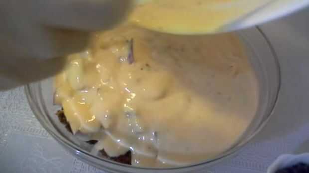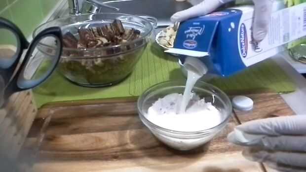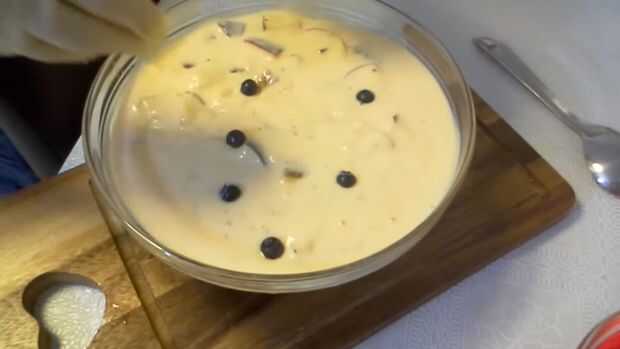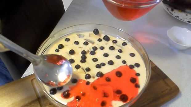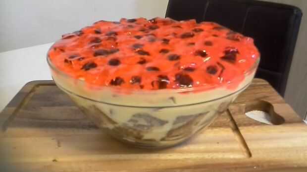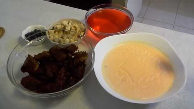 Ahora Vierta la crema en un bol y dejar enfriar en temperatura ambiente, después en algún momento puede mantener en la nevera como la jalea, para relajarse. Después de la crema y la gelatina son fresco y frío, montar la trifle.before a partir de la construcción de la bagatela añadir los plátanos y las manzanas a la crema.
