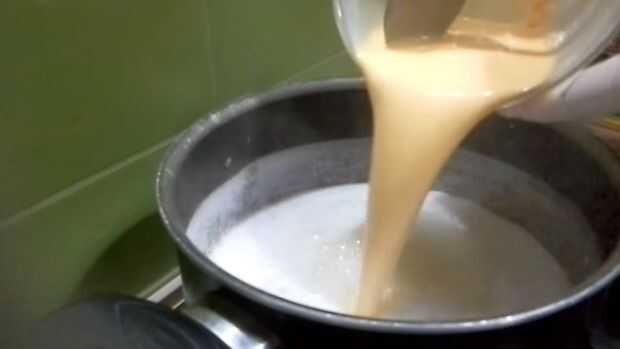 Cuando se haya disuelto completamente el polvo de flan en la leche, añadir esta mezcla a ebullición la leche. mezclar todo bien, verás que la leche se espesa y es donde está la señal que el flan está listo.