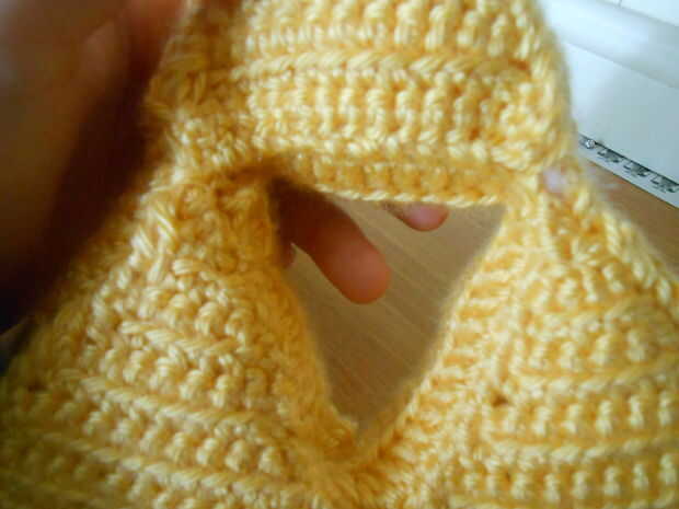 - Siga cosiendo hasta que haya sólo una pulgada de espacio abierto a la izquierda en la parte inferior del último triángulo. Al otro lado del interruptor y completamente coser un lado y sujete los dos extremos de la arista exterior. No coser el último tramo del lado opuesto del triángulo. Terminar y meter hilo sobrante en el triángulo. Llenar el resto del espacio con frijoles o arroz. Terminar de coser el borde y triángulo junto. Terminar y al final de la armadura.