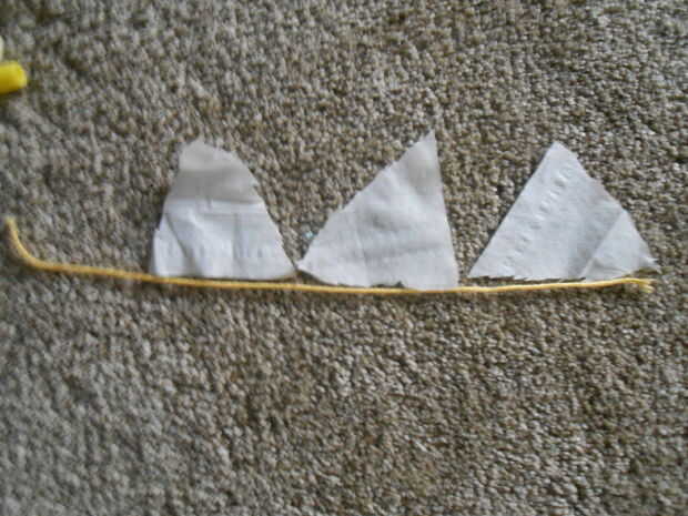 - Coloque tres de los triángulos en la forma final, lados más largos en la parte inferior.