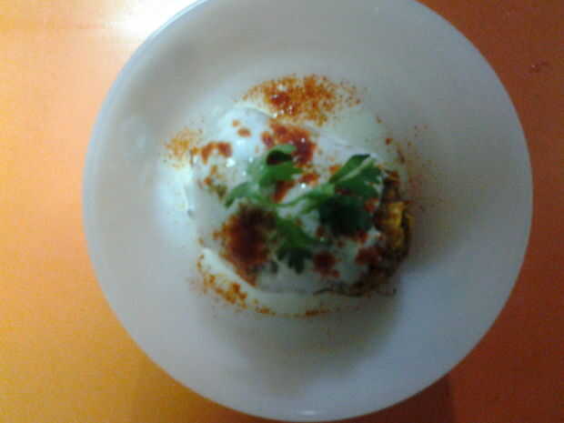 Servir con chutney de Tamarindo cuajada, salpique chat masala.
