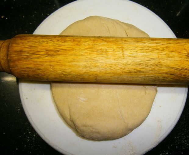 Trigo integral Pizza Bolsillos se hacen con masa de pizza integral casera y horneados con ingredientes picadas de pollo y verduras todo dentro. Estos bolsillos de deliciosa pizza son cepillados con mantequilla derretida y al horno doradas!Paso 1: ing