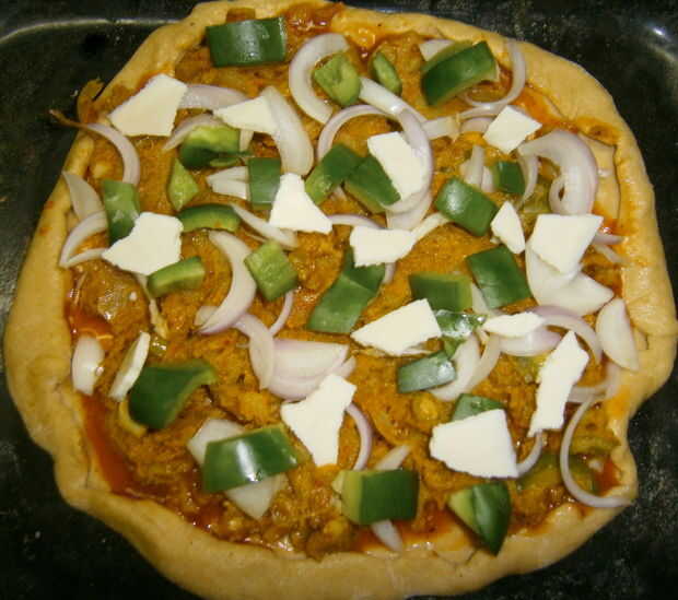 Trigo integral Pizza Bolsillos se hacen con masa de pizza integral casera y horneados con ingredientes picadas de pollo y verduras todo dentro. Estos bolsillos de deliciosa pizza son cepillados con mantequilla derretida y al horno doradas!Paso 1: ing
