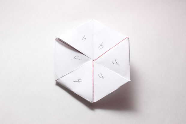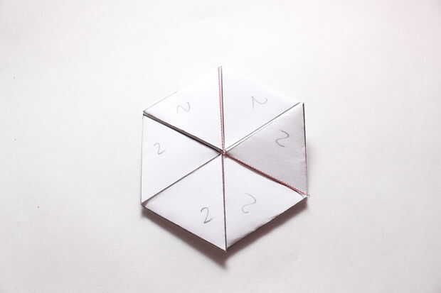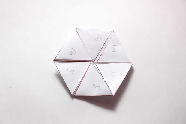 Tratar de encontrar los 6 lados de lo hexahexaflexagon y tratar de averiguar exactamente qué triples demuestran para arriba.