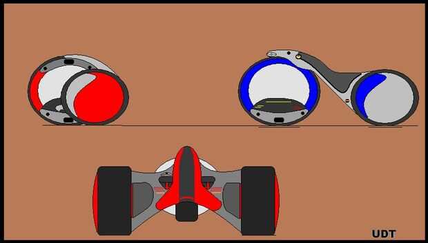 La burbuja triciclo tiene tres ruedas, la rueda delantera es la aceleración y el volante, en la rueda delantera hay dos asientos y los paneles de control que son la posición en la masa más baja de la rueda, esta también es la ubicación del motor, esta parte del vehículo tiene dos puertas que son hechas de plexiglás que tienen la forma de una media burbuja. Los bateadores están situados en las ruedas traseras que esta sección del vehículo está construida para estabilizar y equilibrar el vehículo a altas velocidades, a baja velocidad que la parte trasera se mueve hacia adelante a aline con la rueda delantera, esto permitirá el vehículo para girar en el punto central del vehículo. El tamaño de este vehículo puede ser comparado con un 2012 V W escarabajo.