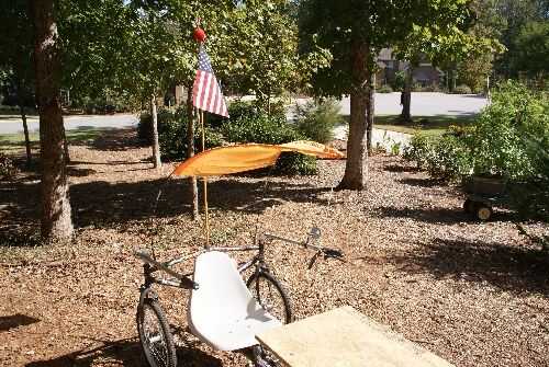 Hay tres partes principales para el triciclo: la rueda frontal (pasos 1-4), el marco principal con asiento (pasos 5-6), las ruedas traseras de dirección (pasos 7-11), manipulación (12) y la parrilla de carga opcional (13). El trike se construye con piezas de tres bicicletas de donantes que conseguí en un tonel de la bici como describí en este "Ible": una lista de piezas está en camino (14).