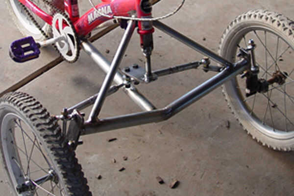 este trike es una distancia entre ejes larga, delta dirección semiacostada, posterior. He construido cinco triciclos delta hasta ahora. Este fue el número tres y sigue siendo mi favorito para viajar.Hay tres partes principales para el triciclo: la ru