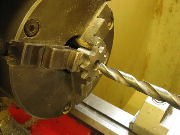El mecanizado era necesaria porque los pernos debían utilizarse para la fijación piñón a la rueda y el jefe fue demasiado grande el patrón de agujeros de perno en el eje de la rueda. ¿Me recibes?